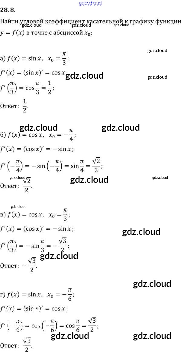 §28. Вычисление производных Глава 5 по Алгебре 10, 11 класс Задачник Мордкович Базовый уровень Часть 2 Мнемозина