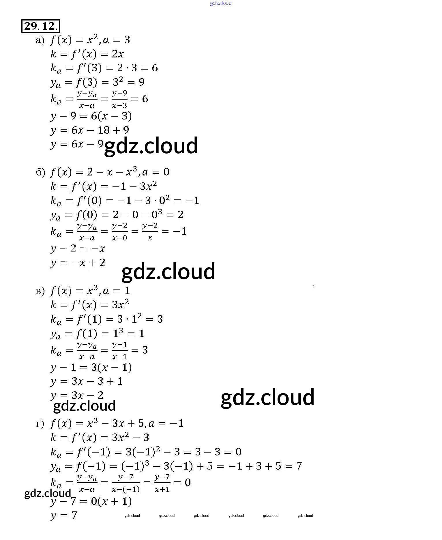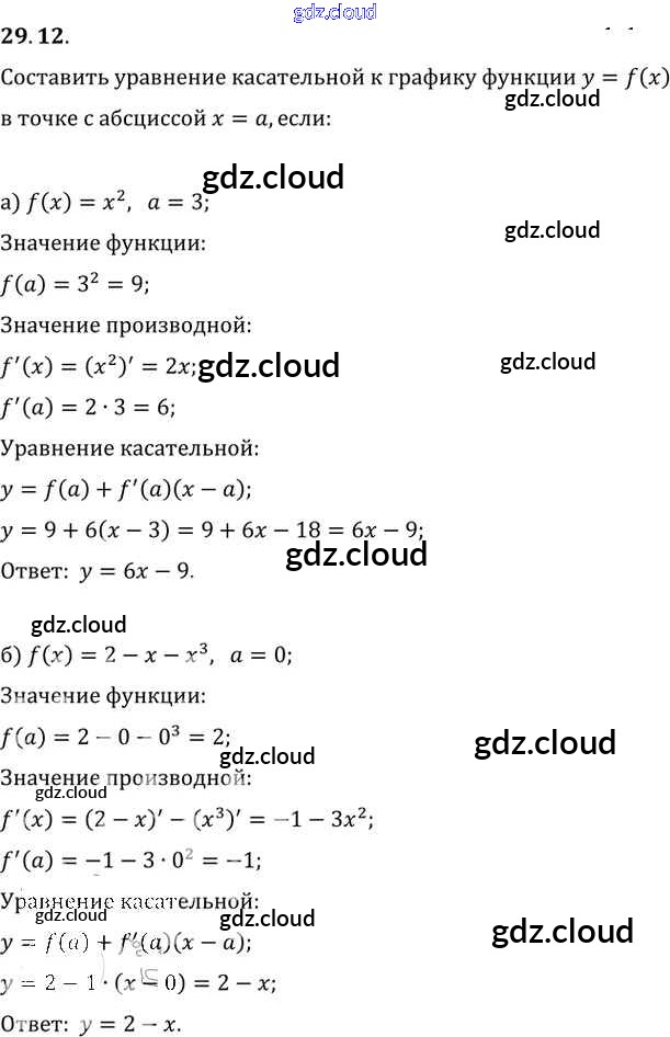 §29. Уравнение касательной к графику функции Глава 5 по Алгебре 10, 11 класс Задачник Мордкович Базовый уровень Часть 2 Мнемозина