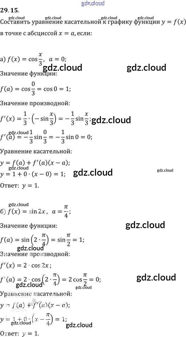 §29. Уравнение касательной к графику функции Глава 5 по Алгебре 10, 11 класс Задачник Мордкович Базовый уровень Часть 2 Мнемозина