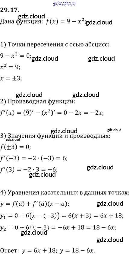 §29. Уравнение касательной к графику функции Глава 5 по Алгебре 10, 11 класс Задачник Мордкович Базовый уровень Часть 2 Мнемозина