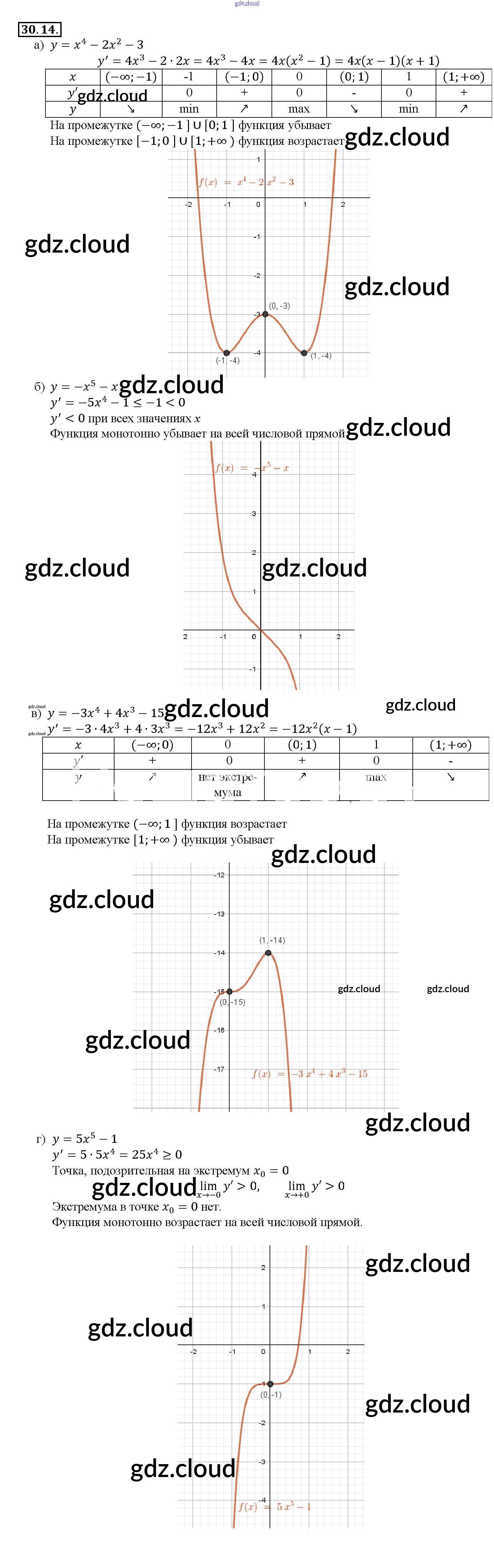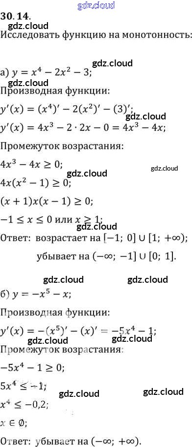 §30. Применение производной для исследования функций на монотонность и экстремумы Глава 5 по Алгебре 10, 11 класс Задачник Мордкович Базовый уровень Часть 2 Мнемозина