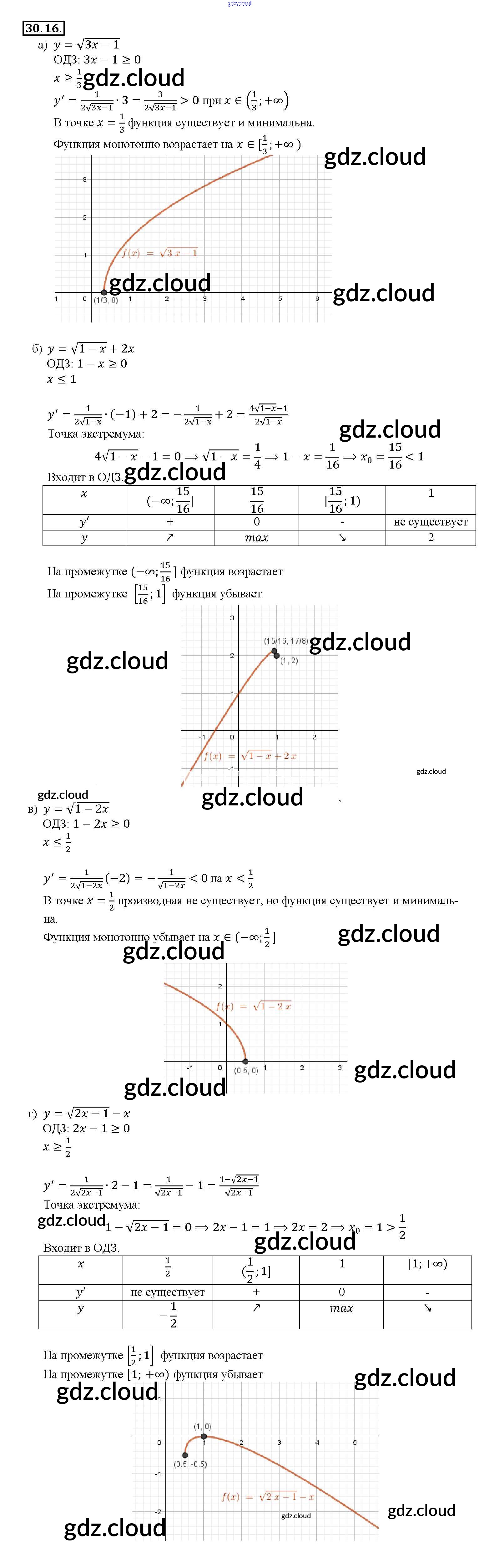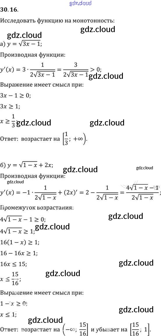 §30. Применение производной для исследования функций на монотонность и экстремумы Глава 5 по Алгебре 10, 11 класс Задачник Мордкович Базовый уровень Часть 2 Мнемозина