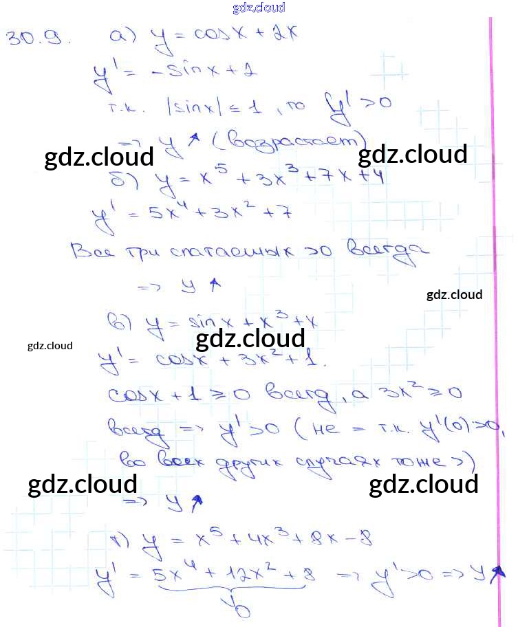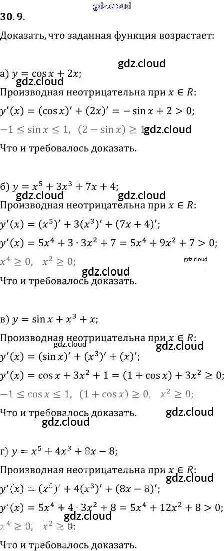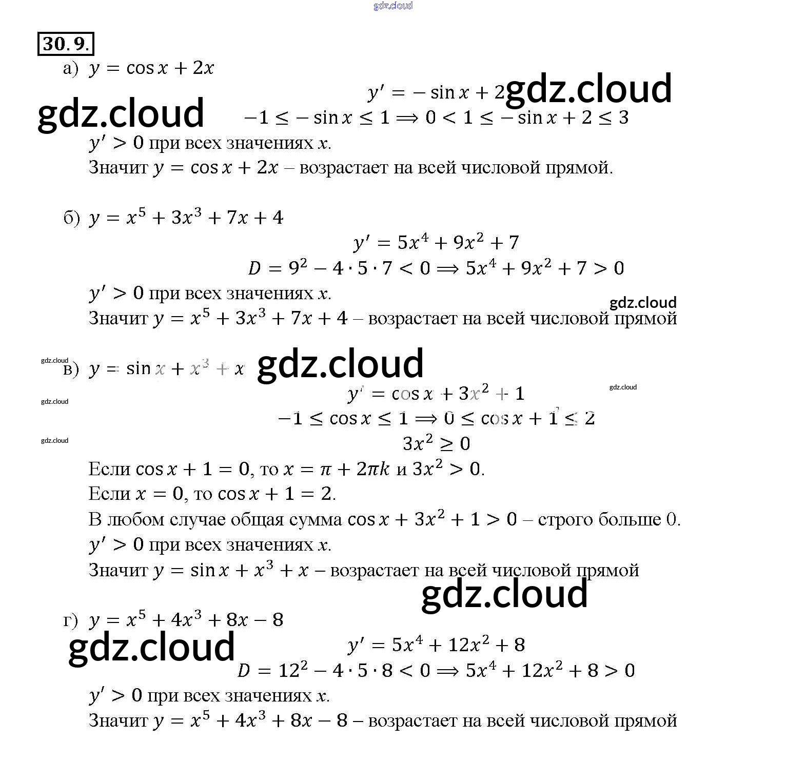 §30. Применение производной для исследования функций на монотонность и экстремумы Глава 5 по Алгебре 10, 11 класс Задачник Мордкович Базовый уровень Часть 2 Мнемозина