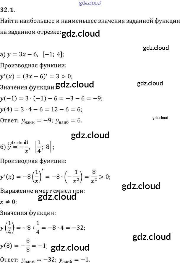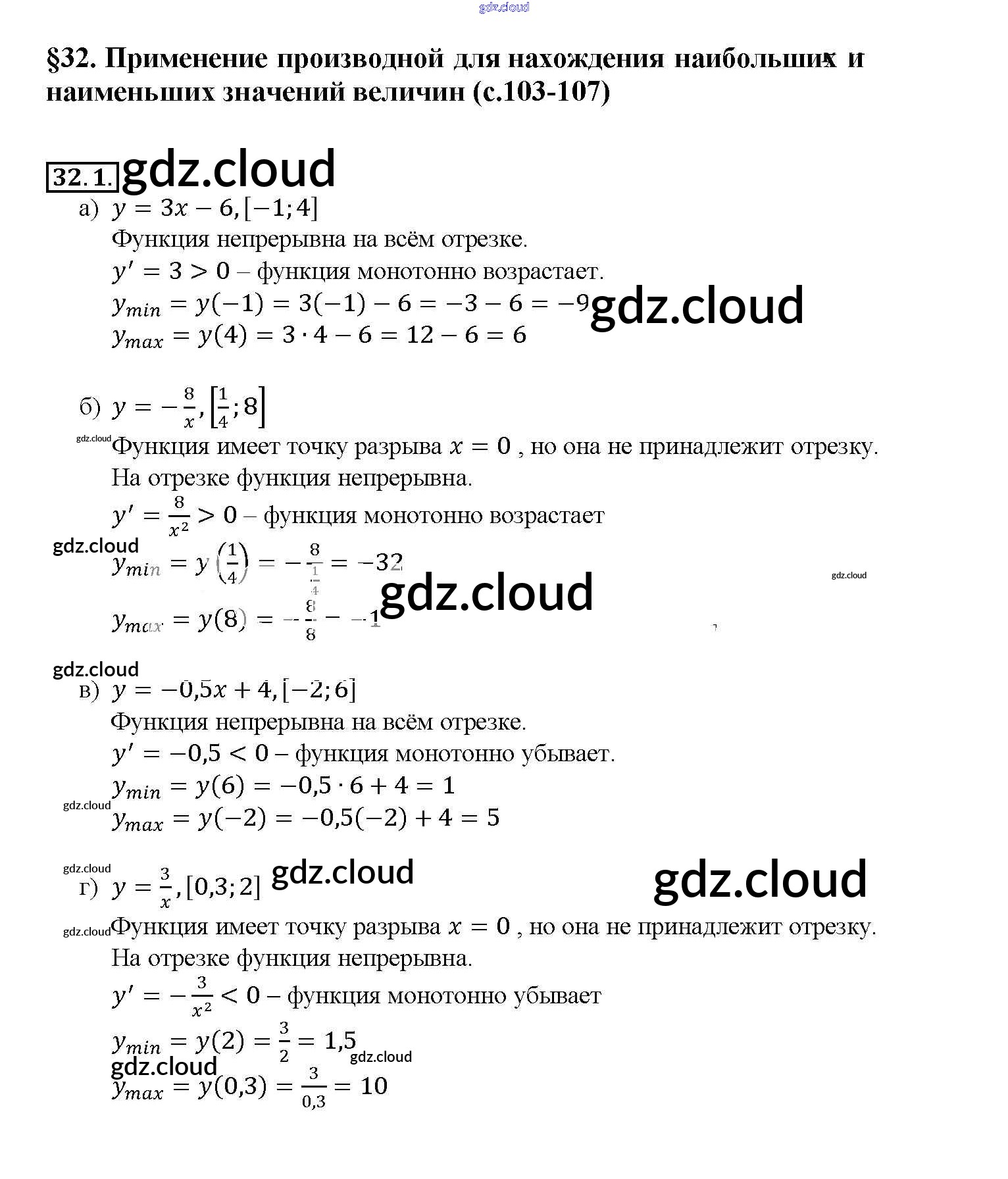 §32. Применение производной для нахождения наибольших и наименьших значений величин Глава 5 по Алгебре 10, 11 класс Задачник Мордкович Базовый уровень Часть 2 Мнемозина