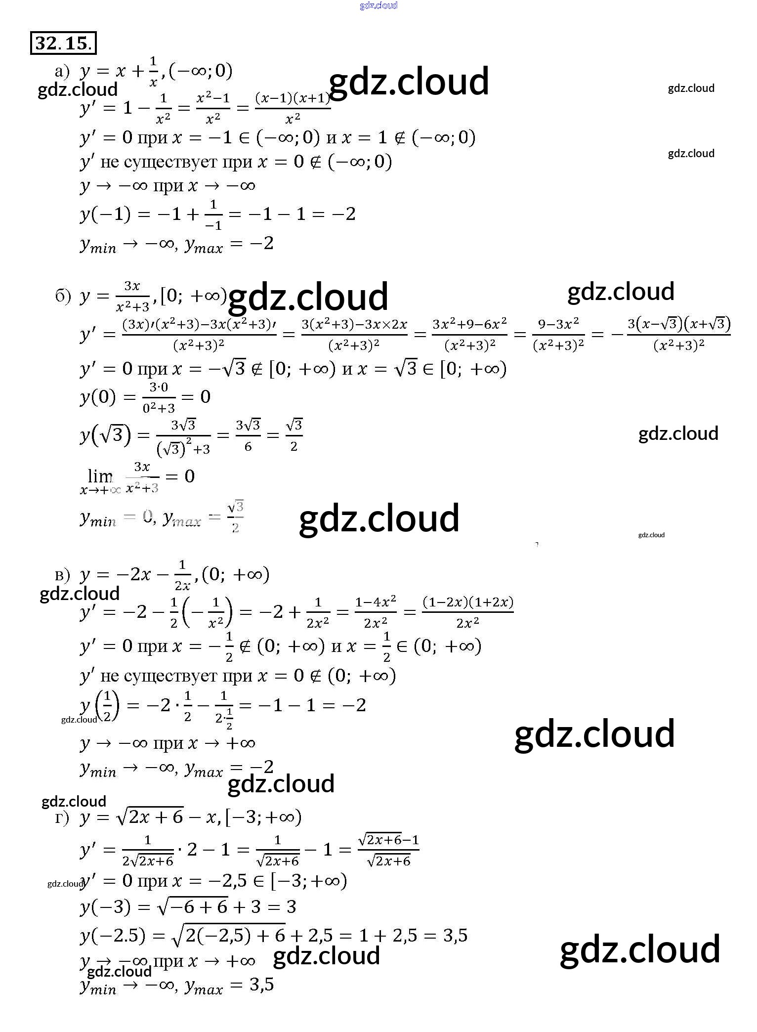 §32. Применение производной для нахождения наибольших и наименьших значений величин Глава 5 по Алгебре 10, 11 класс Задачник Мордкович Базовый уровень Часть 2 Мнемозина