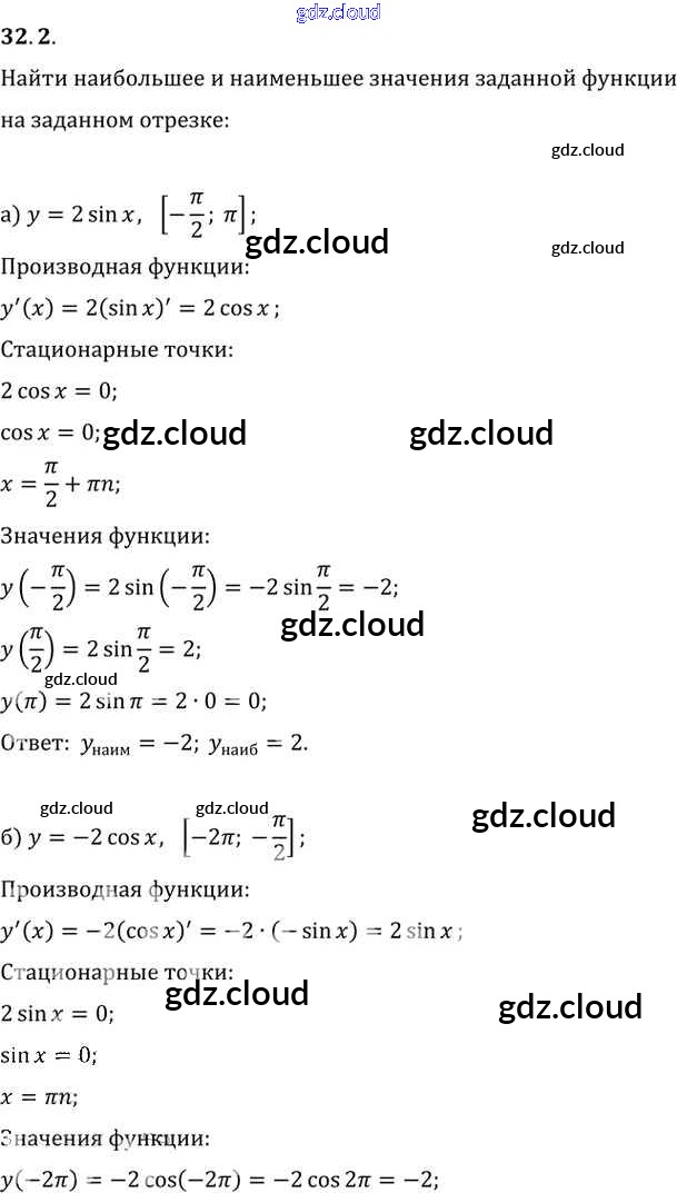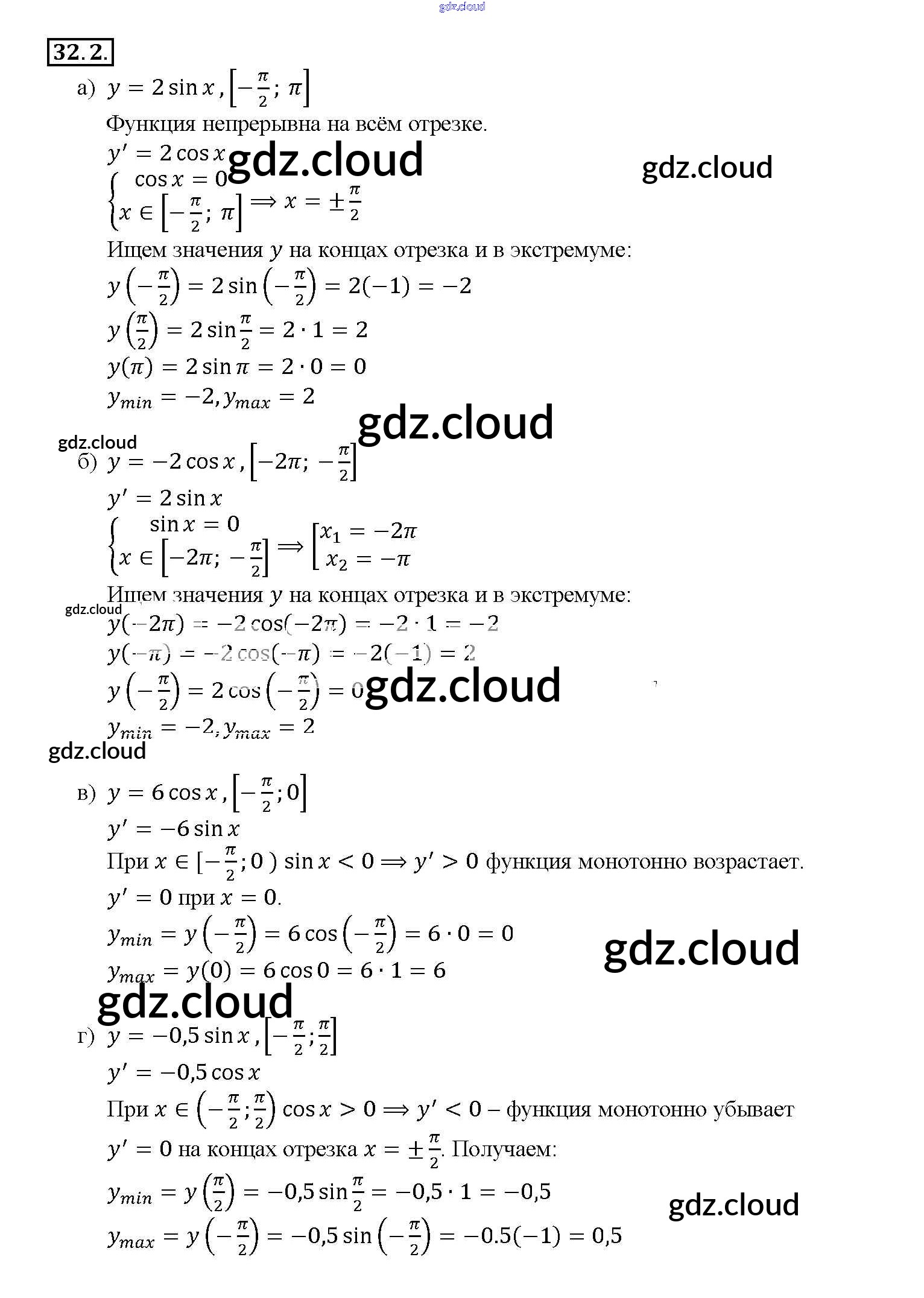 §32. Применение производной для нахождения наибольших и наименьших значений величин Глава 5 по Алгебре 10, 11 класс Задачник Мордкович Базовый уровень Часть 2 Мнемозина