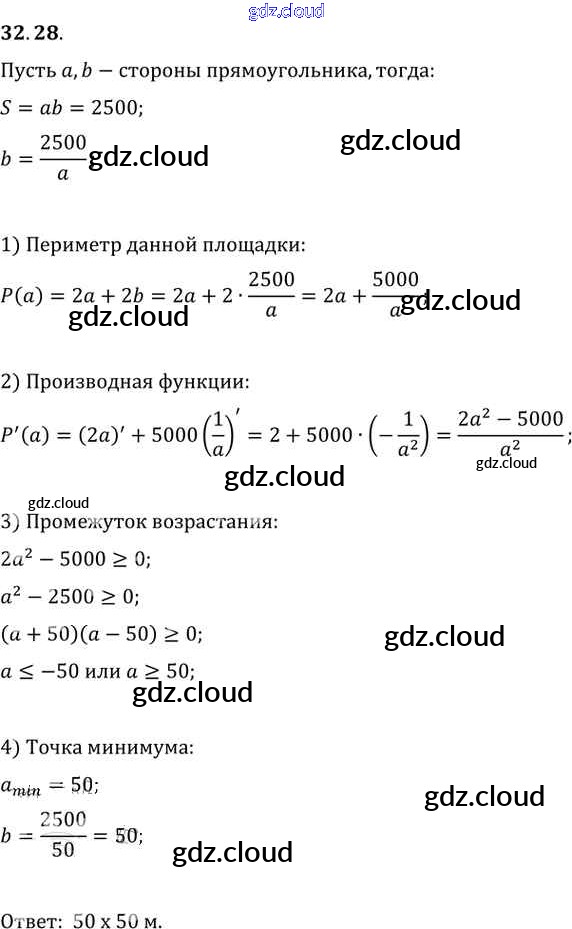 §32. Применение производной для нахождения наибольших и наименьших значений величин Глава 5 по Алгебре 10, 11 класс Задачник Мордкович Базовый уровень Часть 2 Мнемозина