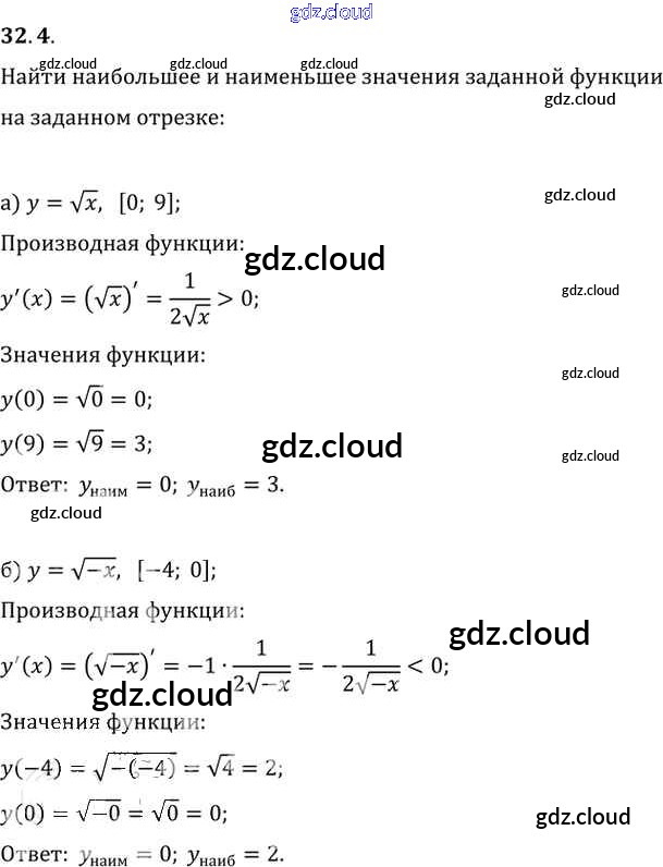 §32. Применение производной для нахождения наибольших и наименьших значений величин Глава 5 по Алгебре 10, 11 класс Задачник Мордкович Базовый уровень Часть 2 Мнемозина
