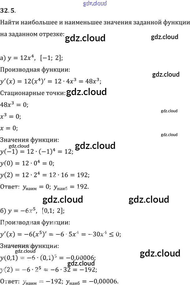§32. Применение производной для нахождения наибольших и наименьших значений величин Глава 5 по Алгебре 10, 11 класс Задачник Мордкович Базовый уровень Часть 2 Мнемозина