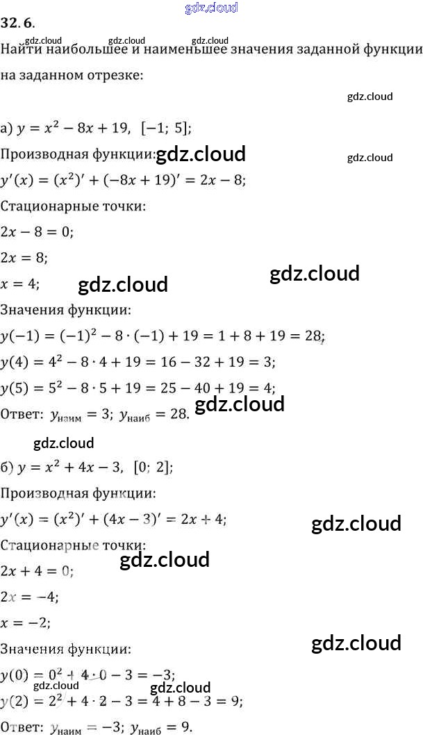 §32. Применение производной для нахождения наибольших и наименьших значений величин Глава 5 по Алгебре 10, 11 класс Задачник Мордкович Базовый уровень Часть 2 Мнемозина