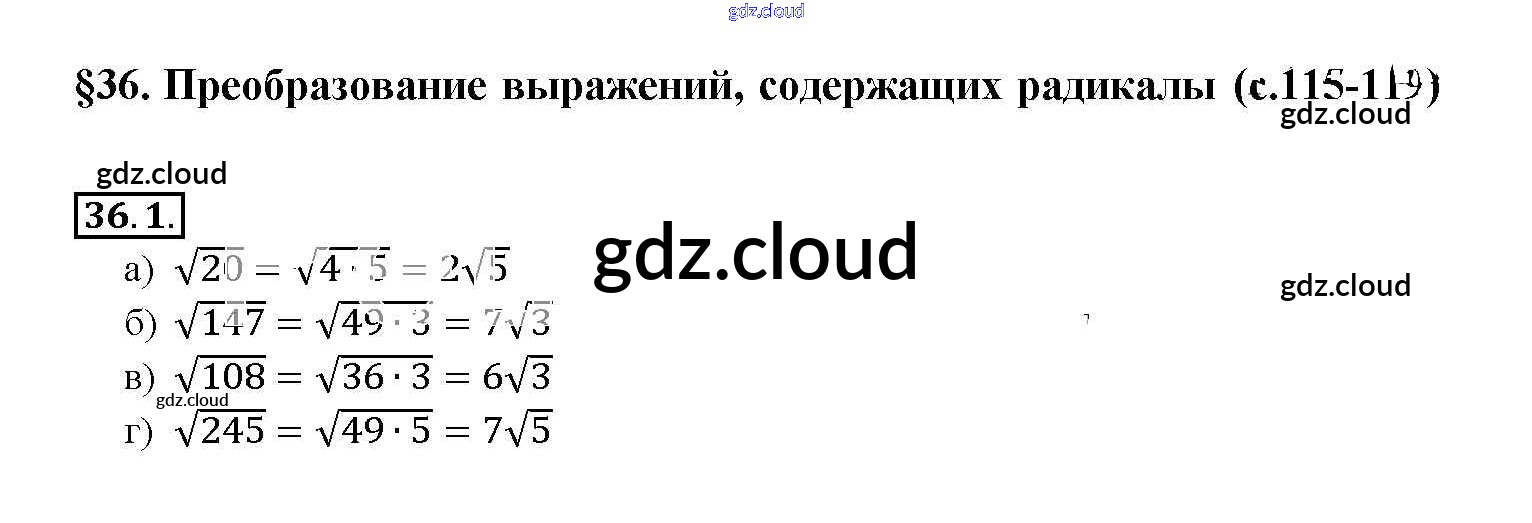 §36. Преобразование выражений, содержащих радикалы Глава 6 по Алгебре 10, 11 класс Задачник Мордкович Базовый уровень Часть 2 Мнемозина
