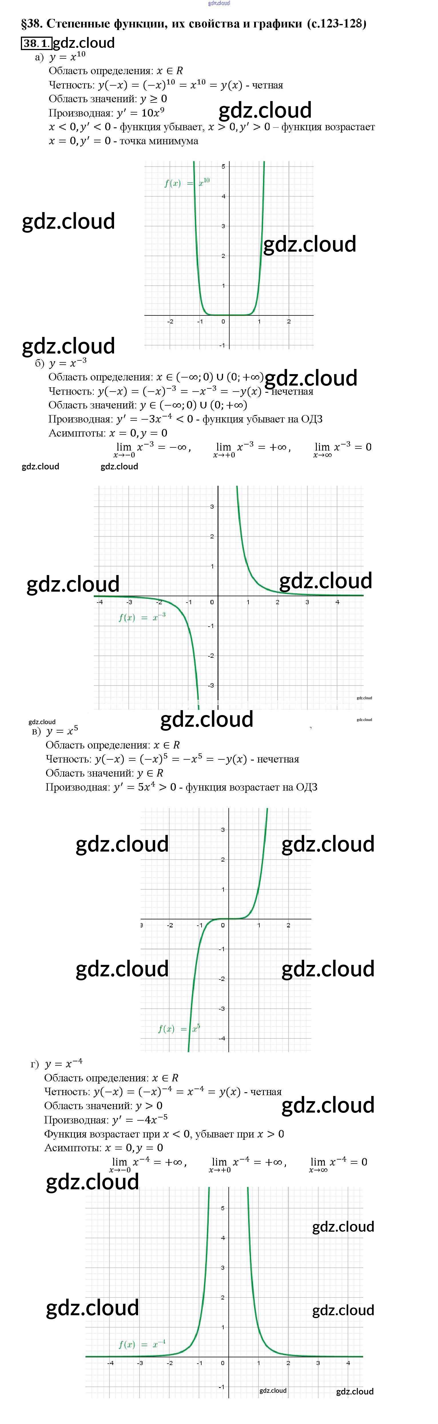 §38. Степенные функции, их свойства и графики Глава 6 по Алгебре 10, 11 класс Задачник Мордкович Базовый уровень Часть 2 Мнемозина