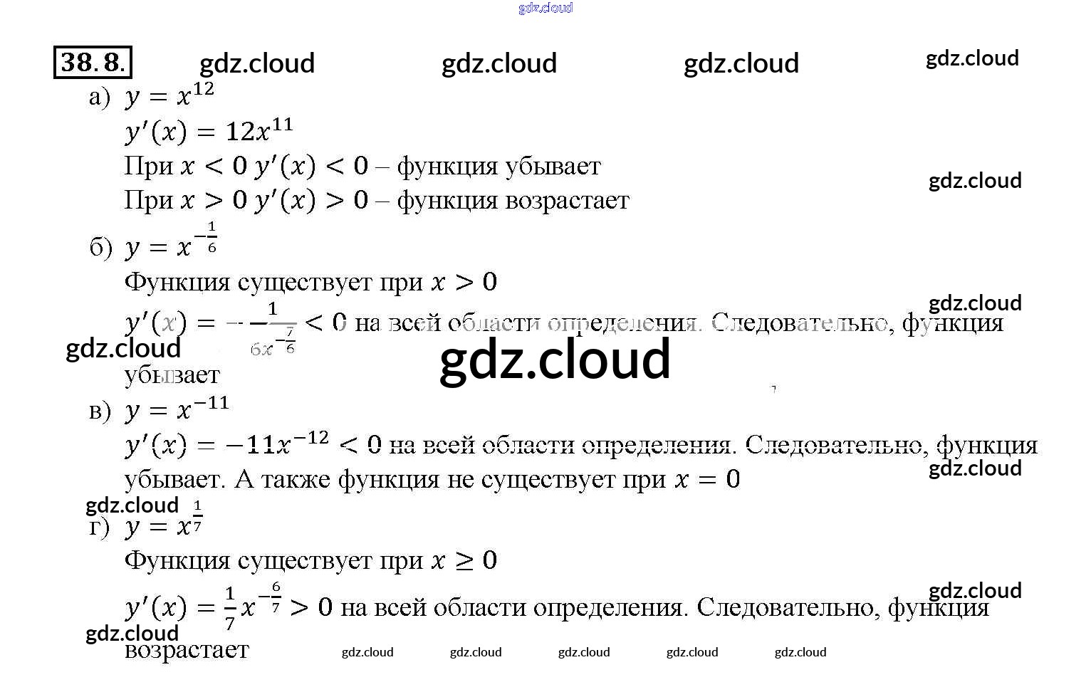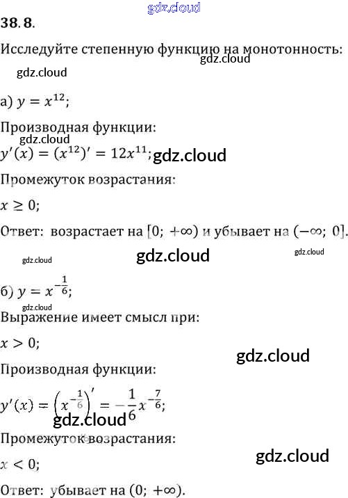 §38. Степенные функции, их свойства и графики Глава 6 по Алгебре 10, 11 класс Задачник Мордкович Базовый уровень Часть 2 Мнемозина
