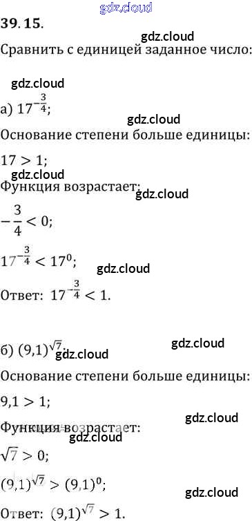 Ответ на задание 39. 15 Задачник Алгебра за 10, 11 (десятый, одиннадцатый) класс Мордкович, Денищева, Корешкова, Мишустина, Семёнов, Тульчинская Базовый уровень 2015 Часть 2