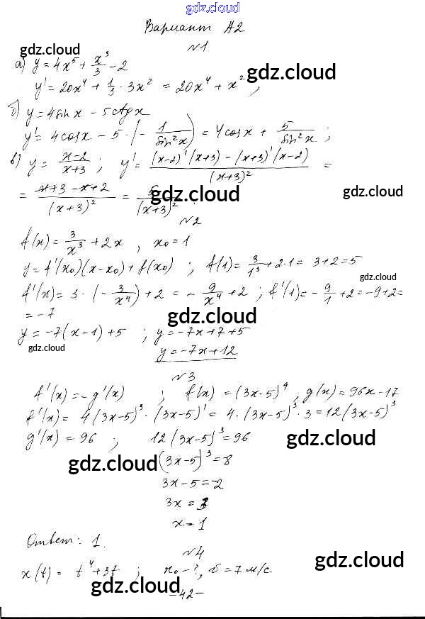 КР-7. Варианты Ответы к Контрольным работам по Алгебре 10, 11 класс Самостоятельные и контрольные работы Ершова Илекса