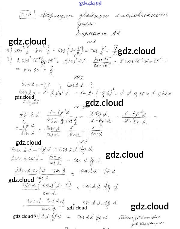 СР-4. Варианты Ответы к Самостоятельным работам по Алгебре 10, 11 класс Самостоятельные и контрольные работы Ершова Илекса