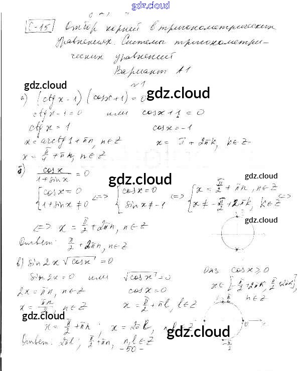 СР-15. Варианты Ответы к Самостоятельным работам по Алгебре 10, 11 класс Самостоятельные и контрольные работы Ершова Илекса