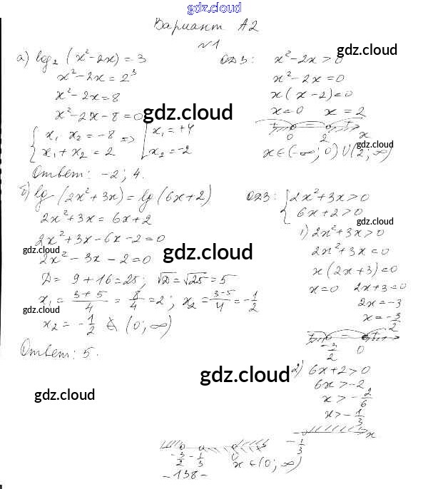 Ответ на задание А2 Самостоятельные и контрольные работы Алгебра за 10, 11 (десятый, одиннадцатый) класс Ершова, Голобородько 2016