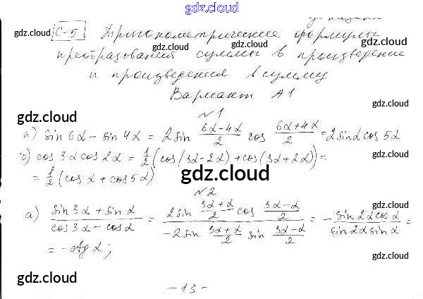 СР-5. Варианты Ответы к Самостоятельным работам по Алгебре 10, 11 класс Самостоятельные и контрольные работы Ершова Илекса