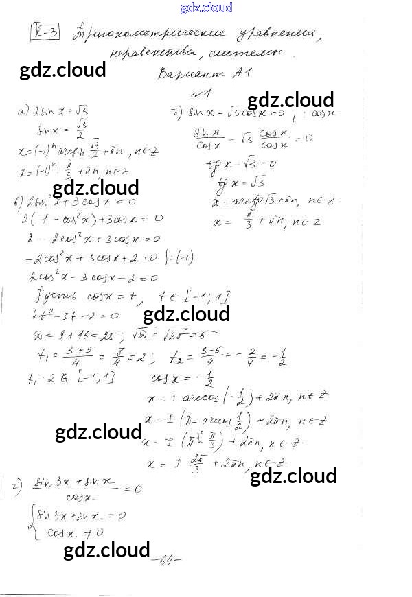 КР-3. Варианты Ответы к Контрольным работам по Алгебре 10, 11 класс Самостоятельные и контрольные работы Ершова Илекса