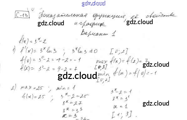 СР-13 Ответы к главе 7. Показательная и логарифмическая функции по Алгебре 11 класс Самостоятельные работы Александрова УМК Базовый уровень Мнемозина