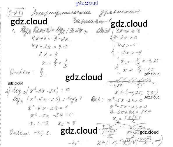 Глава 7. Показательная и логарифмическая функции / СР-21 / В-1