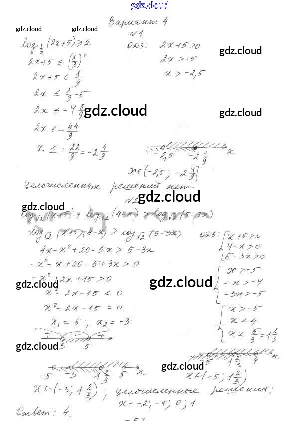 Ответ на задание В-4 Самостоятельные работы Алгебра за 11 (одиннадцатый) класс Александрова УМК Базовый уровень 2016