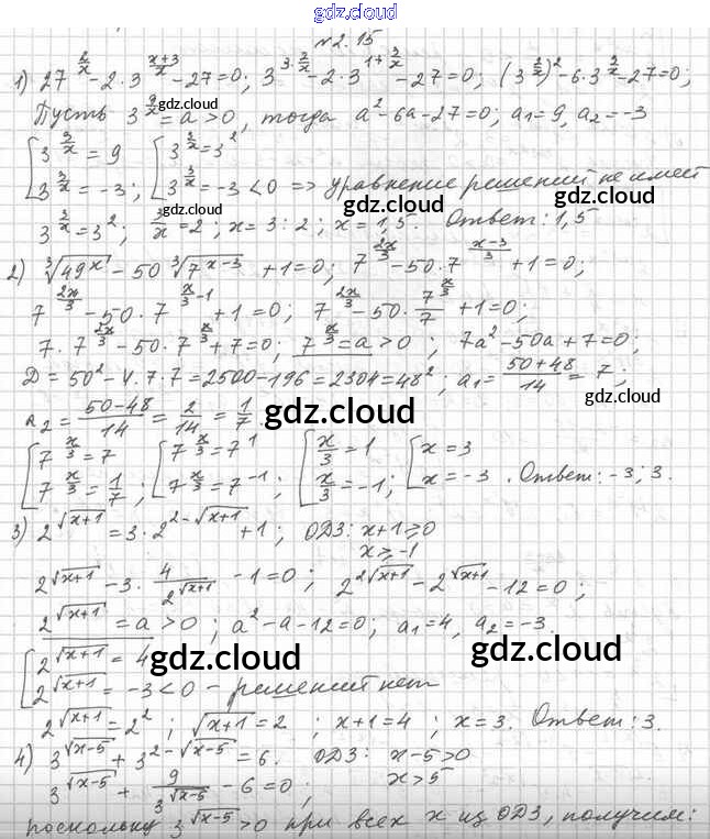 Ответ на задание 2.15 Учебник Алгебра за 11 (одиннадцатый) класс Мерзляк, Номировский, Полонский Алгоритм успеха Базовый и профильный уровни 2017