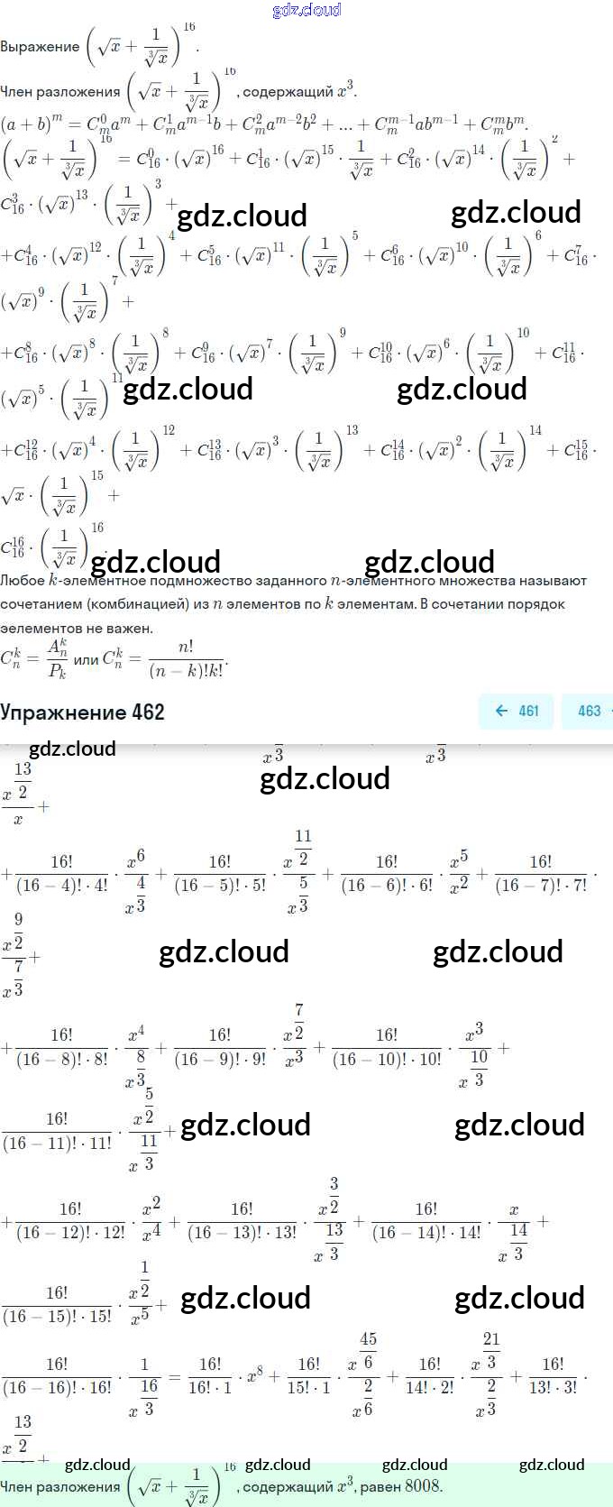 Ответ на задание 462 Учебник Алгебра за 11 (одиннадцатый) класс Колягин, Ткачева, Федорова, Шабунин Базовый и углубленный уровень 2018