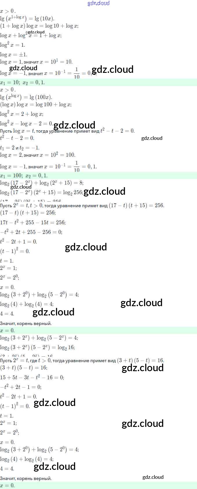 Ответ на задание 852 Учебник Алгебра за 11 (одиннадцатый) класс Колягин, Ткачева, Федорова, Шабунин Базовый и углубленный уровень 2018