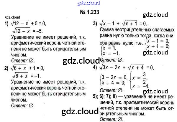 Ответ на задание 1.233 Учебник Алгебра за 11 (одиннадцатый) класс Кузнецова, Муравьева, Шнеперман, Ящин 2015 онлайн и без номера телефона.