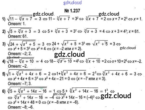 Ответ на задание 1.237 Учебник Алгебра за 11 (одиннадцатый) класс Кузнецова, Муравьева, Шнеперман, Ящин 2015 онлайн и без номера телефона.