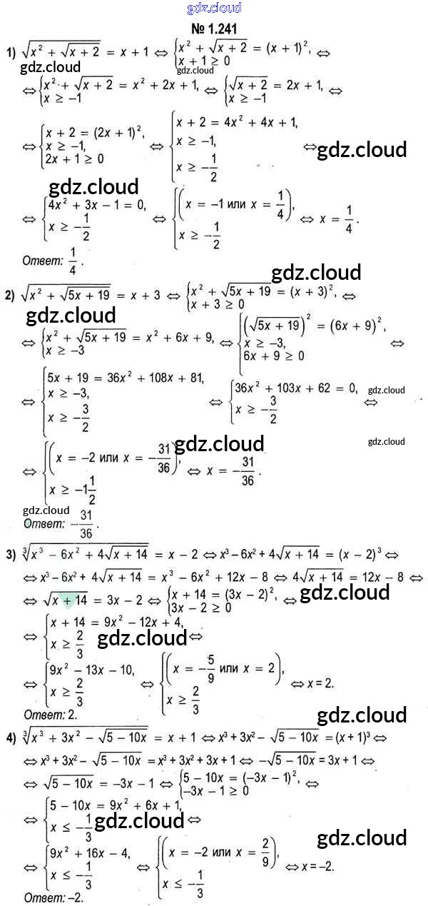 Ответ на задание 1.241 Учебник Алгебра за 11 (одиннадцатый) класс Кузнецова, Муравьева, Шнеперман, Ящин 2015 онлайн и без номера телефона.