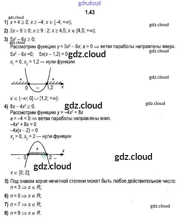 Ответ на задание 1.43 Учебник Алгебра за 11 (одиннадцатый) класс Кузнецова, Муравьева, Шнеперман, Ящин 2015 онлайн и без номера телефона.