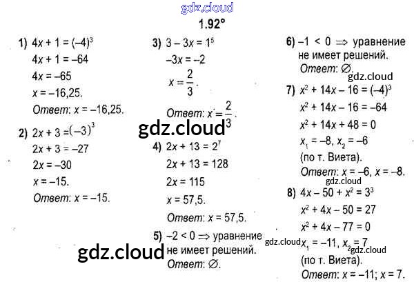 Ответ на задание 1.92 Учебник Алгебра за 11 (одиннадцатый) класс Кузнецова, Муравьева, Шнеперман, Ящин 2015 онлайн и без номера телефона.