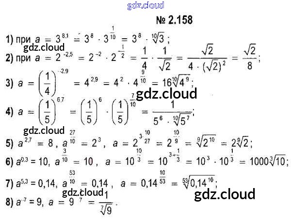 Ответ на задание 2.158 Учебник Алгебра за 11 (одиннадцатый) класс Кузнецова, Муравьева, Шнеперман, Ящин 2015 онлайн и без номера телефона.