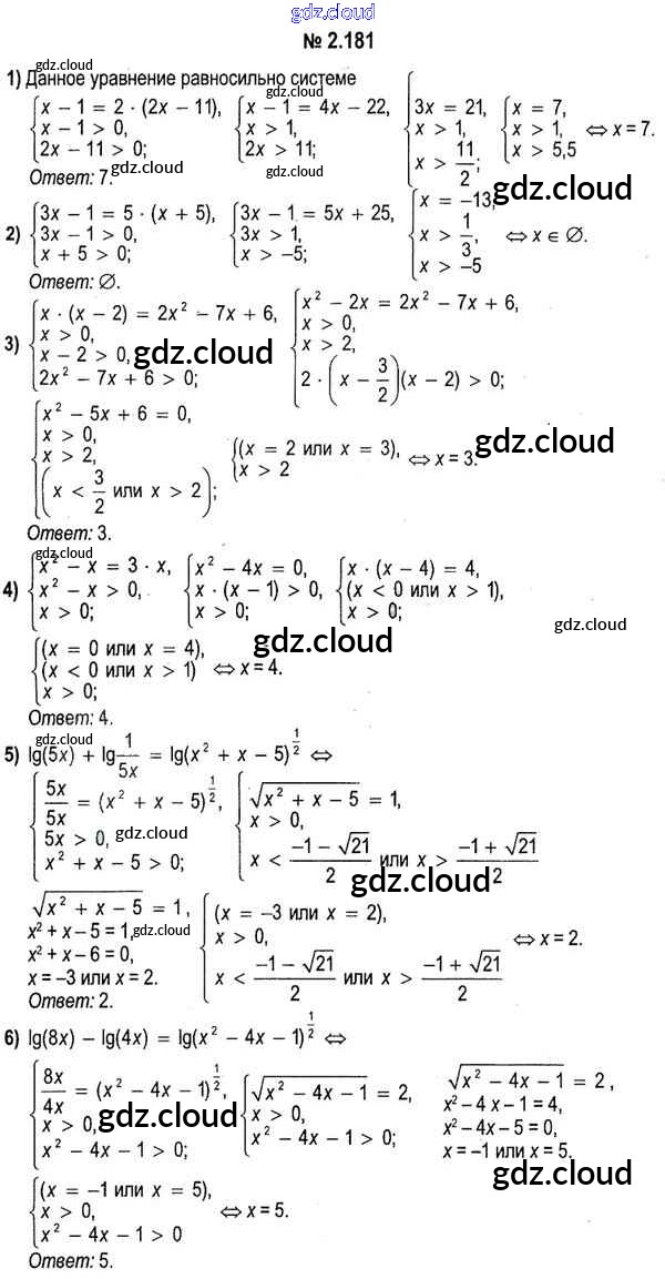 Ответ на задание 2.181 Учебник Алгебра за 11 (одиннадцатый) класс Кузнецова, Муравьева, Шнеперман, Ящин 2015 онлайн и без номера телефона.