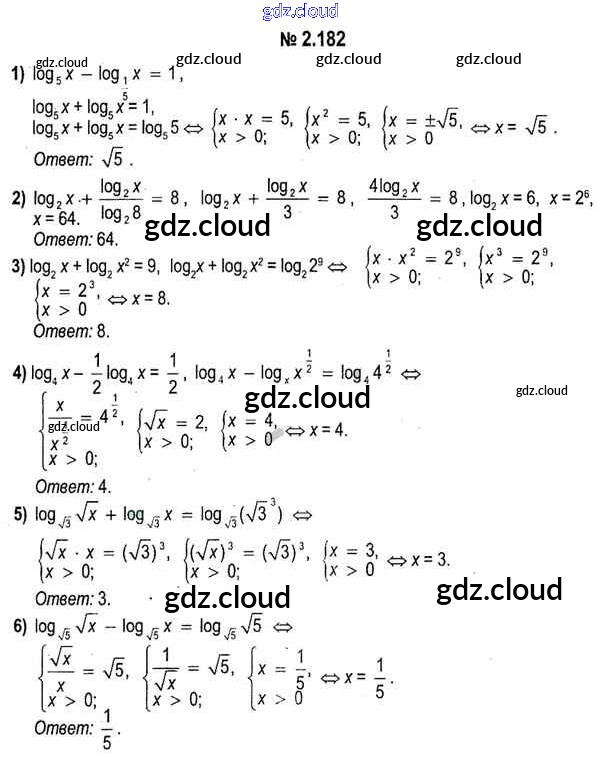 Ответ на задание 2.182 Учебник Алгебра за 11 (одиннадцатый) класс Кузнецова, Муравьева, Шнеперман, Ящин 2015 онлайн и без номера телефона.
