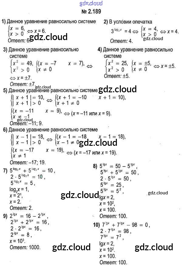 Ответ на задание 2.189 Учебник Алгебра за 11 (одиннадцатый) класс Кузнецова, Муравьева, Шнеперман, Ящин 2015 онлайн и без номера телефона.