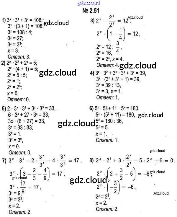 Ответ на задание 2.51 Учебник Алгебра за 11 (одиннадцатый) класс Кузнецова, Муравьева, Шнеперман, Ящин 2015 онлайн и без номера телефона.