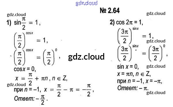 Ответ на задание 2.64 Учебник Алгебра за 11 (одиннадцатый) класс Кузнецова, Муравьева, Шнеперман, Ящин 2015 онлайн и без номера телефона.