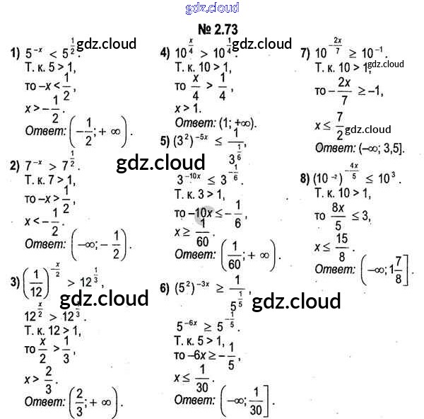 Ответ на задание 2.73 Учебник Алгебра за 11 (одиннадцатый) класс Кузнецова, Муравьева, Шнеперман, Ящин 2015 онлайн и без номера телефона.