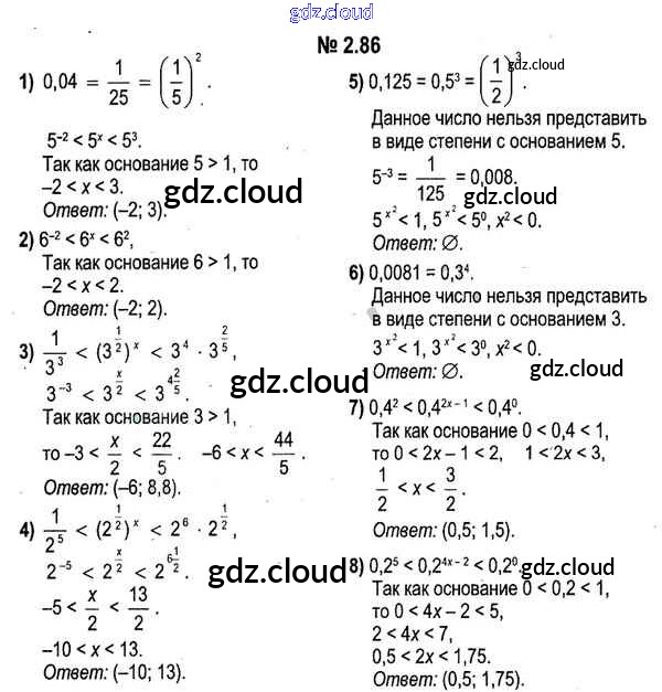 Ответ на задание 2.86 Учебник Алгебра за 11 (одиннадцатый) класс Кузнецова, Муравьева, Шнеперман, Ящин 2015 онлайн и без номера телефона.