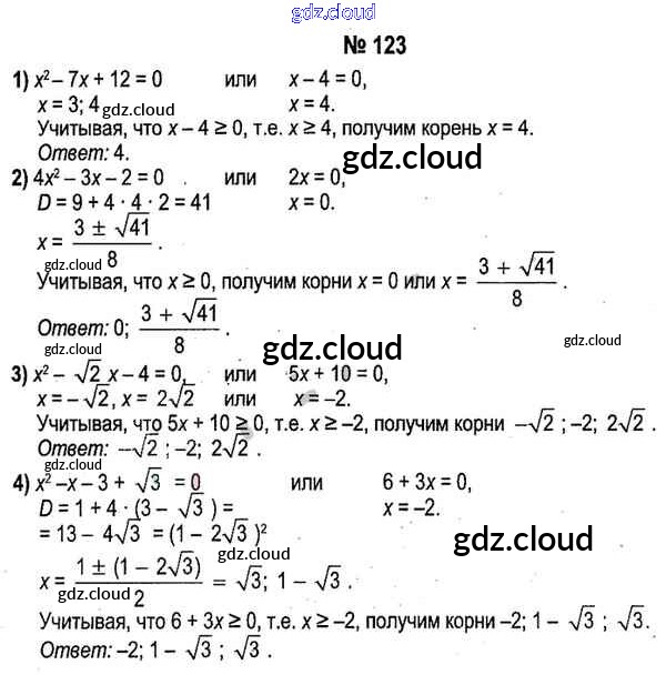 Ответ на задание 123 Учебник Алгебра за 11 (одиннадцатый) класс Кузнецова, Муравьева, Шнеперман, Ящин 2015 онлайн и без номера телефона.