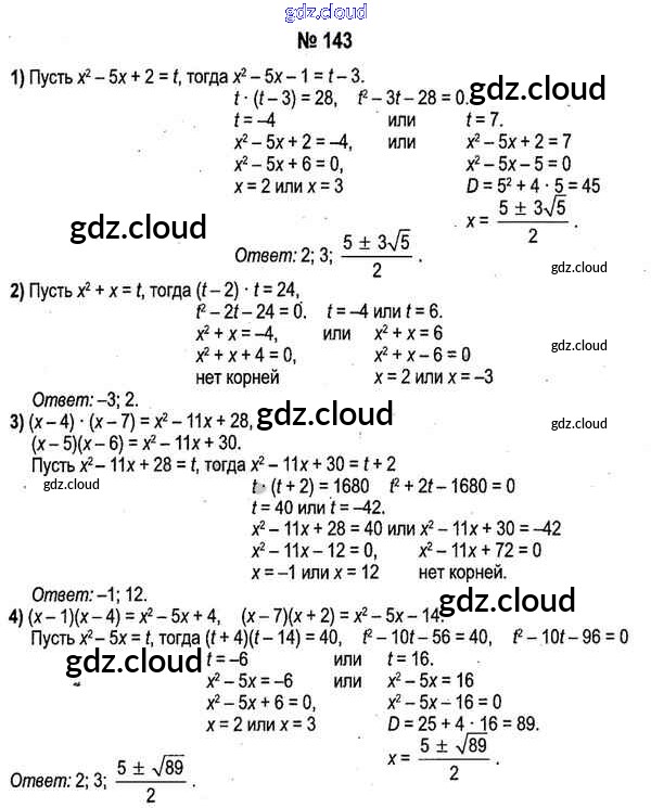 Ответ на задание 143 Учебник Алгебра за 11 (одиннадцатый) класс Кузнецова, Муравьева, Шнеперман, Ящин 2015 онлайн и без номера телефона.