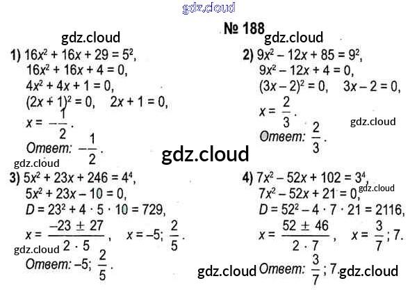 Ответ на задание 188 Учебник Алгебра за 11 (одиннадцатый) класс Кузнецова, Муравьева, Шнеперман, Ящин 2015 онлайн и без номера телефона.