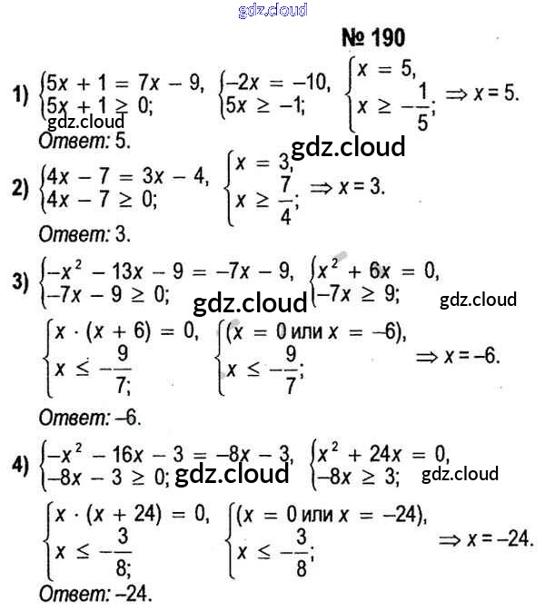 Ответ на задание 190 Учебник Алгебра за 11 (одиннадцатый) класс Кузнецова, Муравьева, Шнеперман, Ящин 2015 онлайн и без номера телефона.