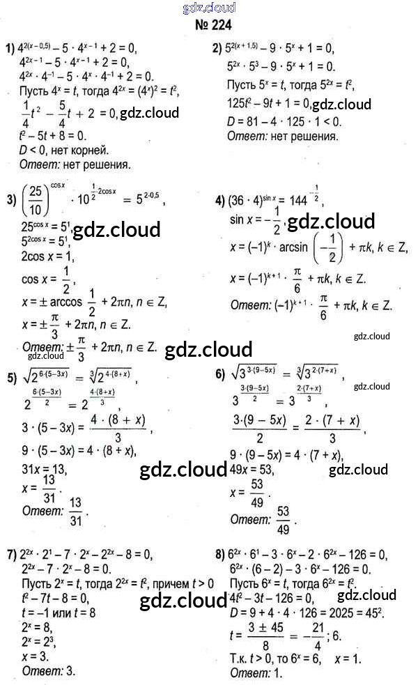 Ответ на задание 224 Учебник Алгебра за 11 (одиннадцатый) класс Кузнецова, Муравьева, Шнеперман, Ящин 2015 онлайн и без номера телефона.
