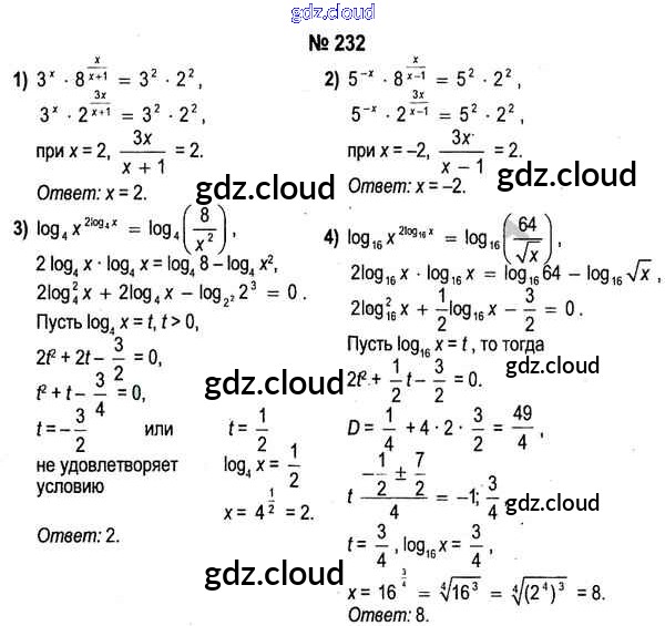 Ответ на задание 232 Учебник Алгебра за 11 (одиннадцатый) класс Кузнецова, Муравьева, Шнеперман, Ящин 2015 онлайн и без номера телефона.