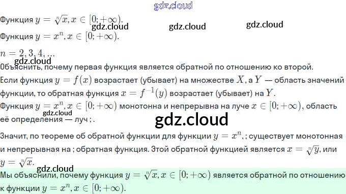 Ответы. §5. Функция у=n^√x, её свойства и график по Алгебре 11 класс Учебник Мордкович Базовый и углубленный уровень Мнемозина